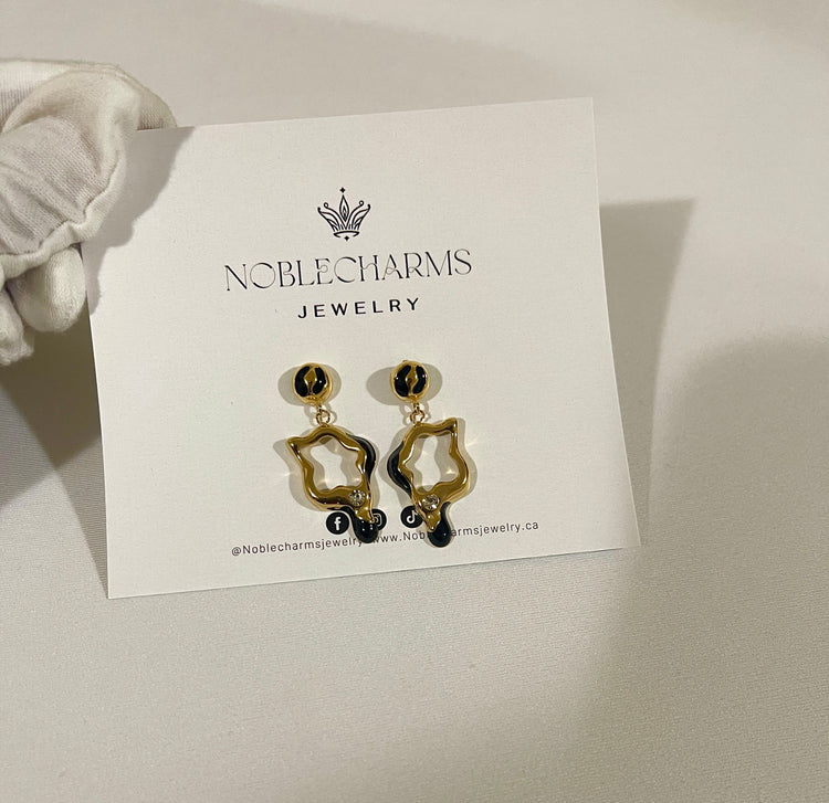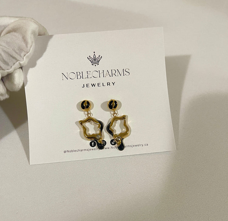 Make a powerful statement with these Black and Gold Mix Earrings, crafted to balance elegance and edge. Featuring a sleek black finish paired with luxurious 18K gold plating, these earrings add instant sophistication to any outfit.