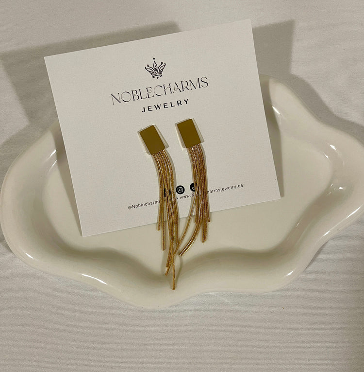 Luxurious gold stainless steel tassel earrings