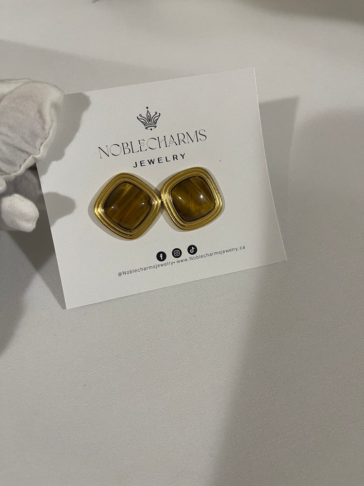 Caramel Glow Gold Earrings – 18K Gold-Plated with Warm Amber Tone