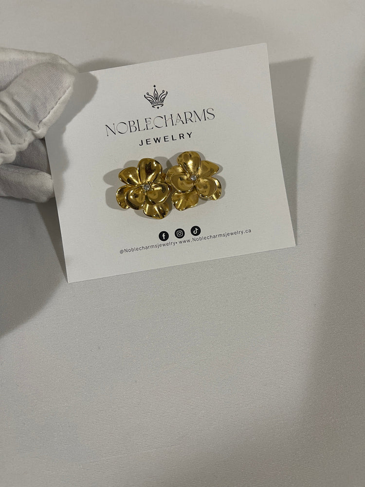 Bloom with elegance in our Flowery Gold Earrings, featuring a soft floral design with a luxurious 18K gold-plated finish. These earrings are the perfect balance of grace and modern charm, making them ideal for both casual looks and special occasions.